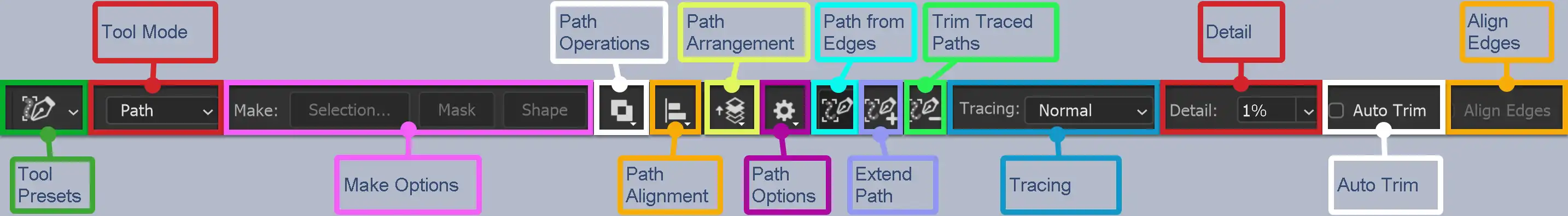 These are some options for your preference while you work with a path.