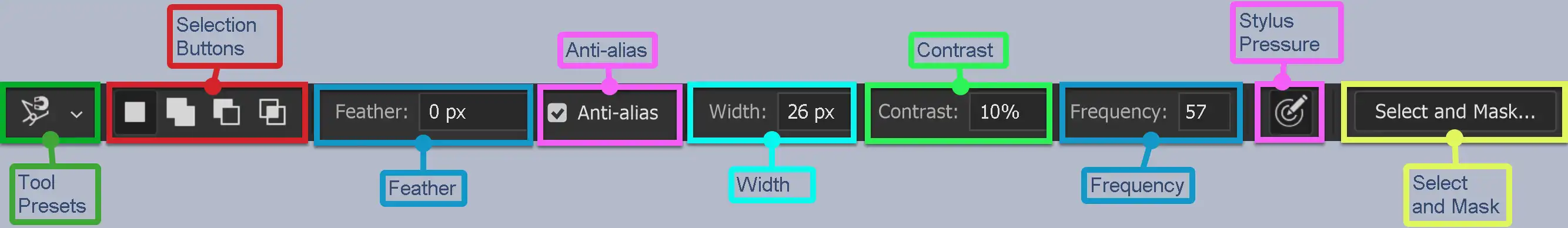Many of the Selection Tools have these four buttons. Left to right, they are;