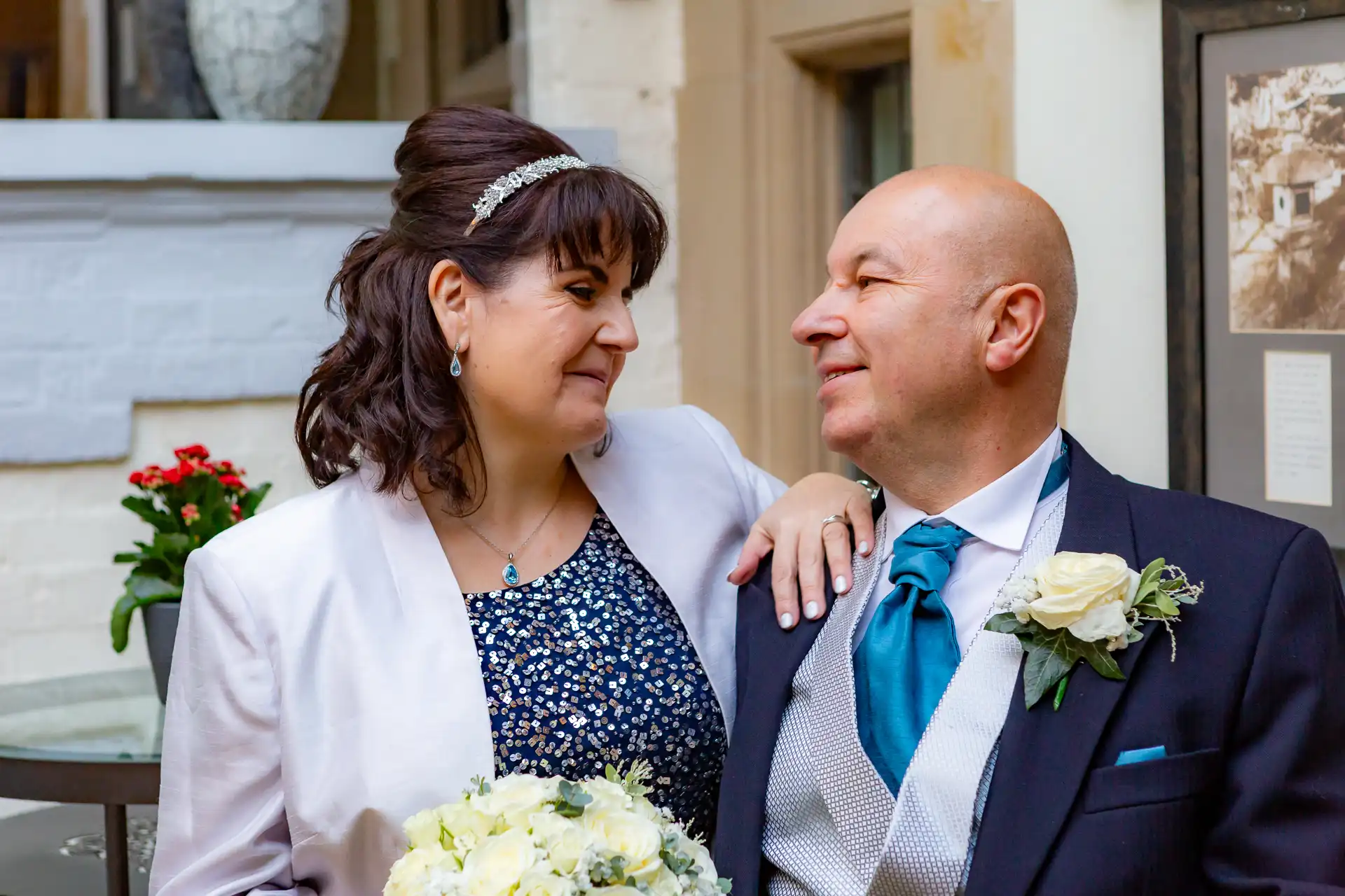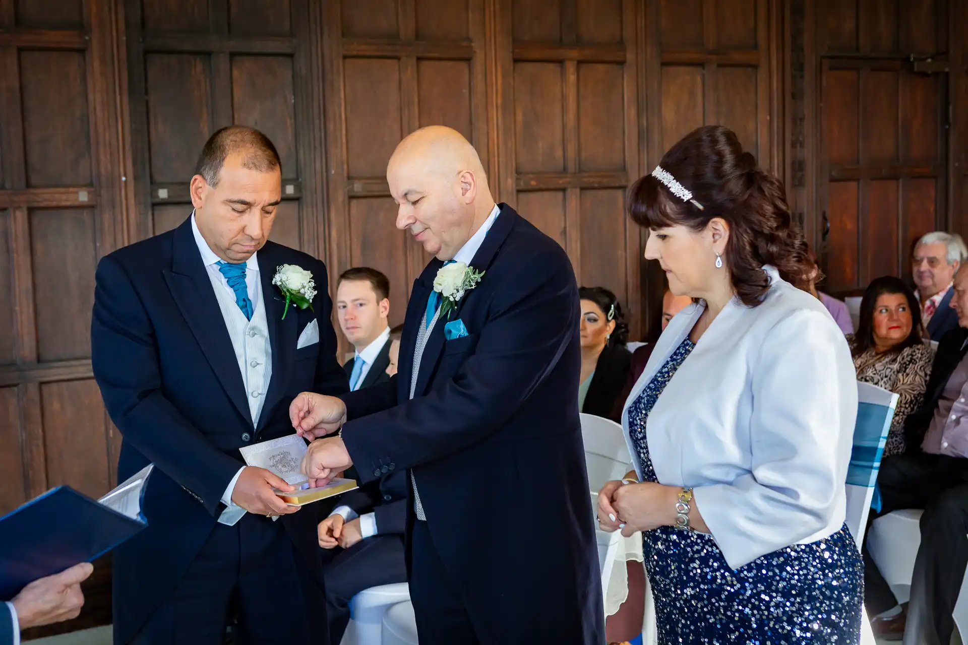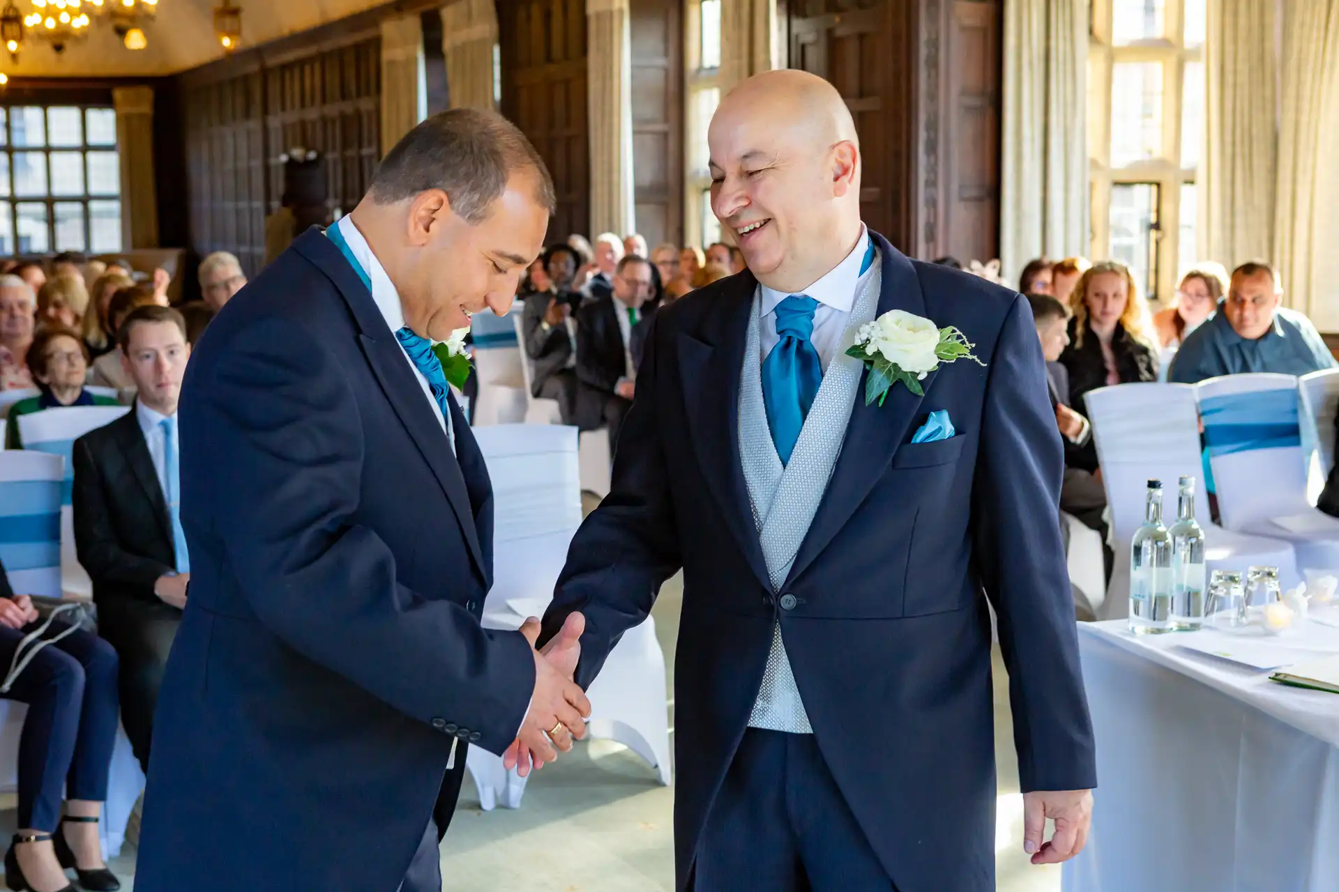 Nigel and Anna tied the knot at the magnificent Fanhams Hall in Ware, Hertfordshire—a venue renowned for its Jacobean architecture, landscaped gardens, and timeless charm. Their ceremony took place in the Long Gallery, a spacious and light-filled room that provided a stunning backdrop for their vows.